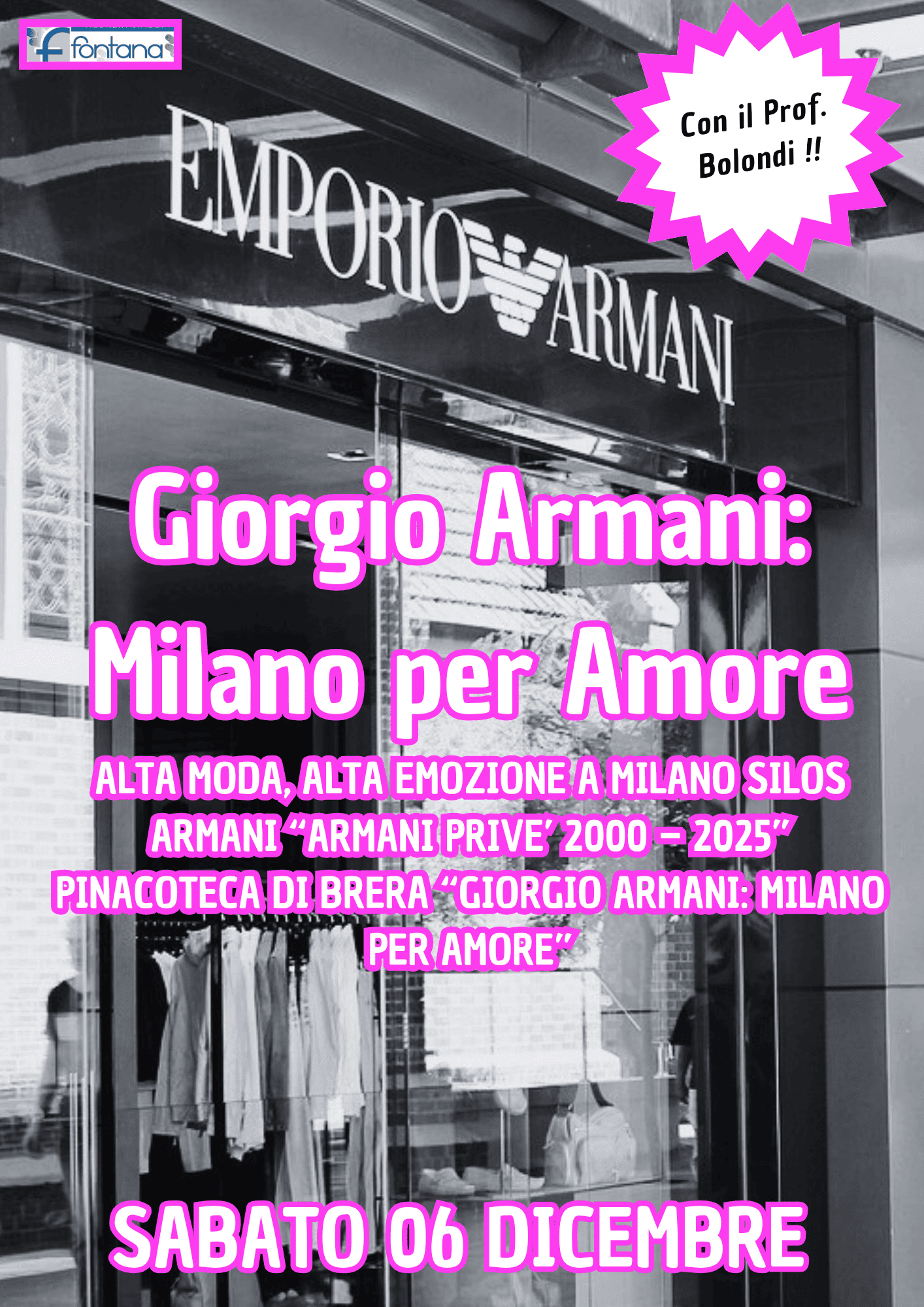Nella prima mattinata ritrovo dei signori partecipanti nei luoghi stabiliti, sistemazione in pullman e partenza per Milano. Arrivo ad ARMANI SILOS, spazio espositivo permanente progettato da Giorgio Armani e inaugurato nel 2015 in occasione della celebrazione dei 40 anni di carriera dello stilista. Costruito nel 1950, l'edificio era originariamente un granaio e attualmente si sviluppa su quattro livelli per una superficie di circa 4.500 metri quadrati. Armani/Silos offre una panoramica del lavoro creativo dello stilista con una selezione unica di creazioni dal 1980 a oggi. Visita guidata alla mostra ARMANI PRIVE’ 2000 – 2025.